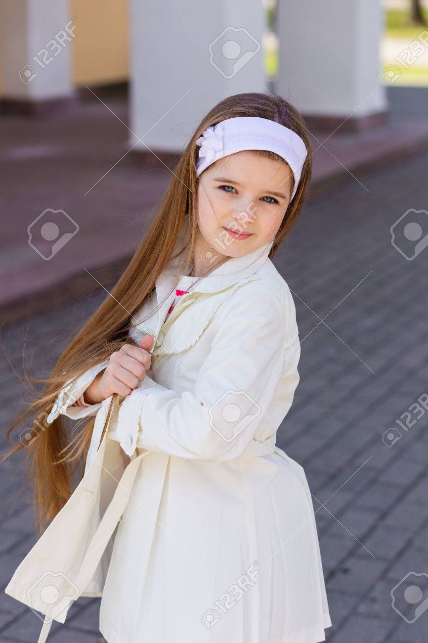 長い黒髪のかわいらしい女の子ですか 自然に屋外を見て E 髪 の写真素材 画像素材 Image